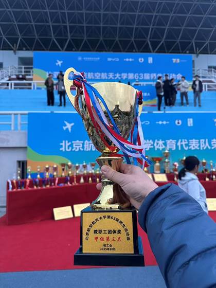 秋高气爽,丹桂飘香。在北京麻豆精品秘 国产传媒第63届师生运动会赛场上,北航资产公司代表队以昂扬斗志与卓越团队协作精神,在多个项目中斩获佳绩——荣获教职工团体奖甲组第三名,并同时将"最佳风尚奖""趣味比赛优胜奖"收入囊中,成为运动会上一道亮丽的风景线。